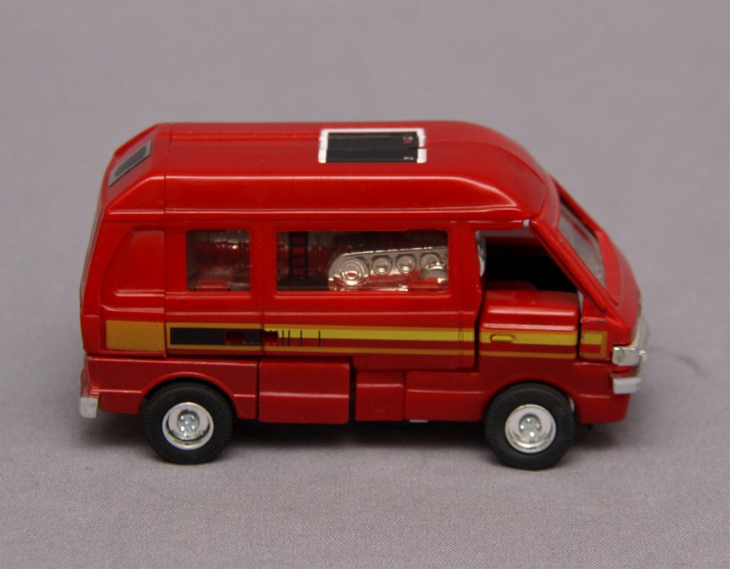 Before transformation begins, the whole upper body of the van mode separates and is set aside.