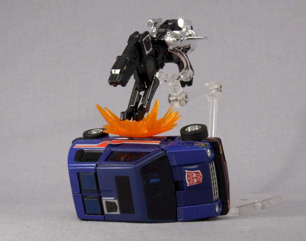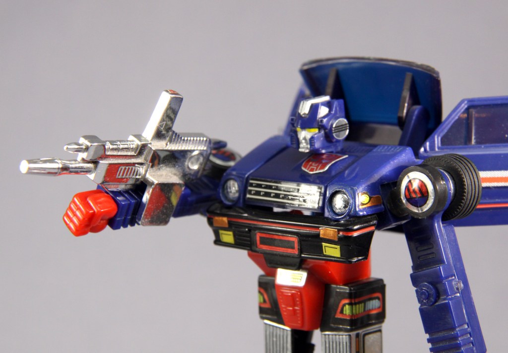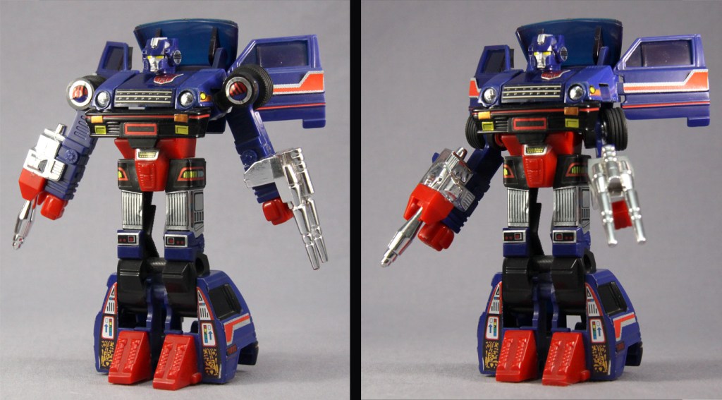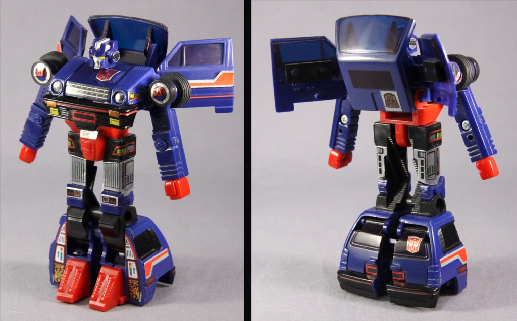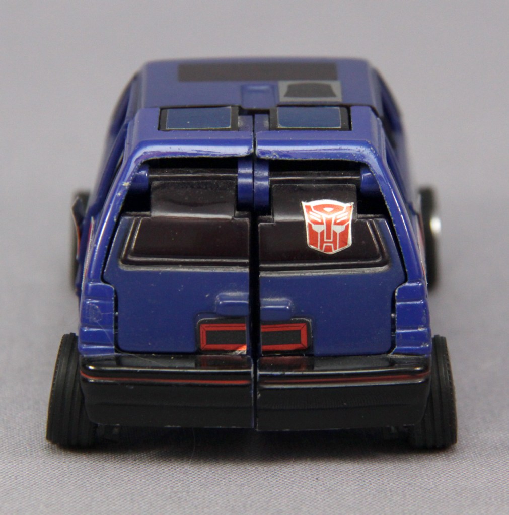 Transformation is similar to many other early G1 Autobots – the hood becomes the chest, the doors become wings, and the rear of the vehicle becomes legs.