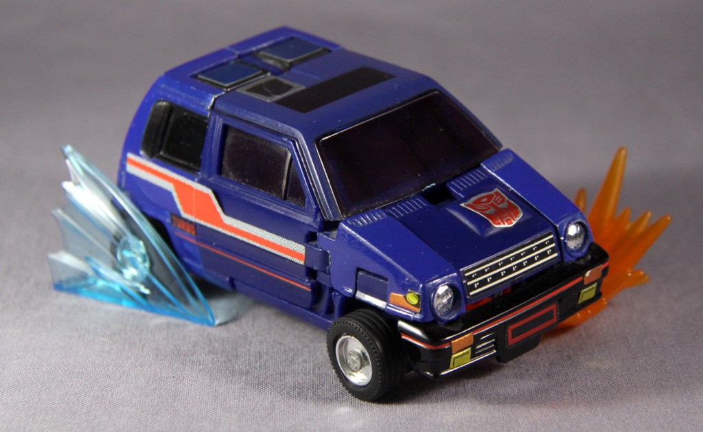 Skids’ alternate mode is a Honda City Turbo. This ultracompact car is somewhat similar to a Honda Civic of the era, but the exact model wasn’t available in the United States in 1985. Since compacts weren’t popular in 1980s America, the artists of the Marvel comic misinterpreted this vehicle mode as a minivan.
