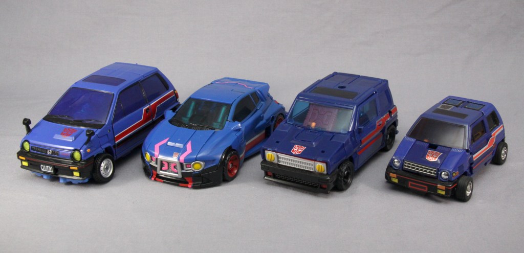 Skids hasn’t had nearly as many toys as most of his fellow Autobot cars. If I did this review a year ago, this photo would only have included the G1 figure and the LG-20 version.