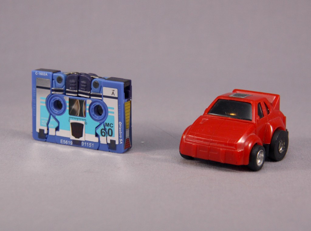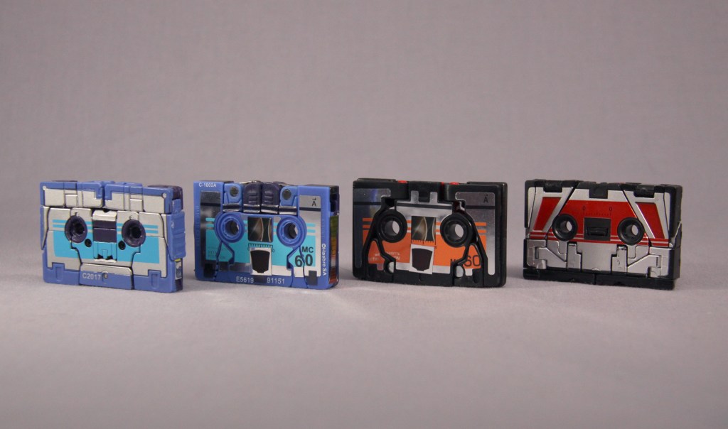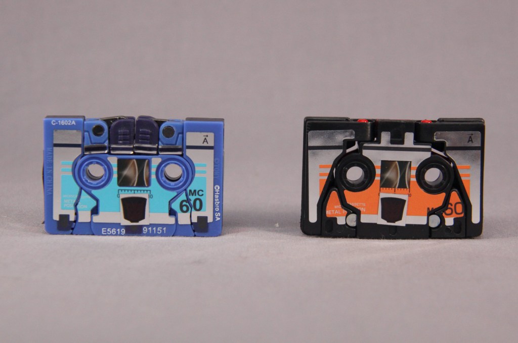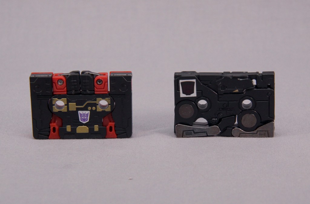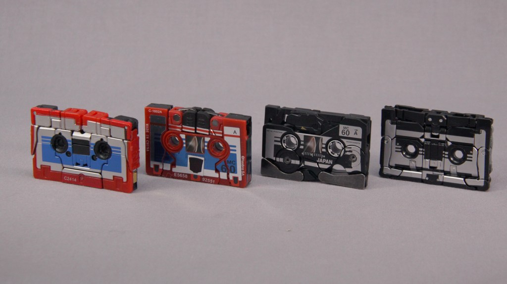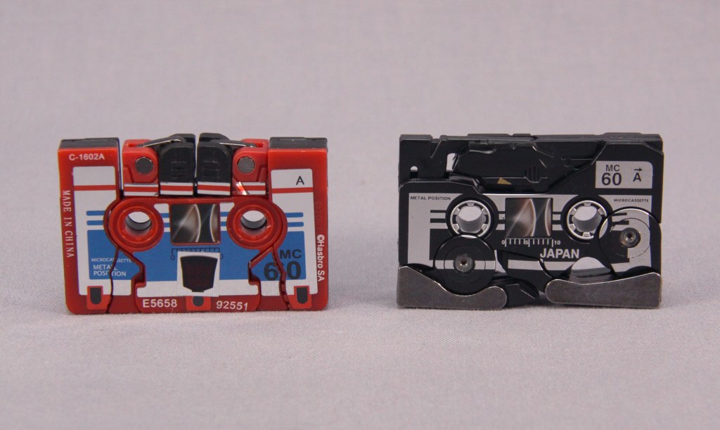 The Masterpiece cassettes were again sized as realistic micro-cassettes, which makes them roughly the same size as the originals.