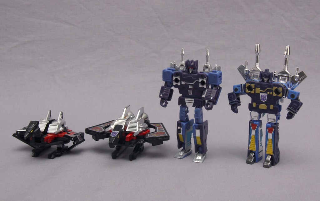 Together with the Decepticon planes Starscream, Thundercracker, and Skywarp, these four cassettes formed the backbone of the Decepticon forces in 1984. Today we’re looking at the 2019 Hasbro reissues of these toys.