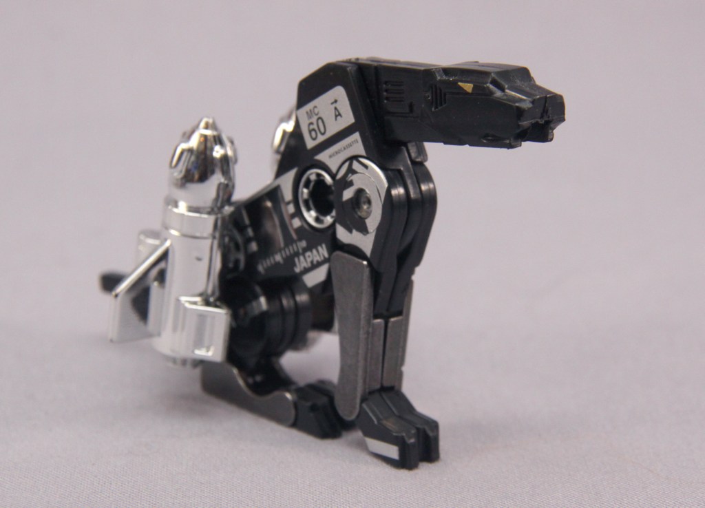 The cassette molds came from the Takara Microman Microchange assortment, where they were individually sold. The humanoid cassette was known as “Micross” and the condor was…well, “Condor.” The latter name was also used for Laserbeak in Japan.