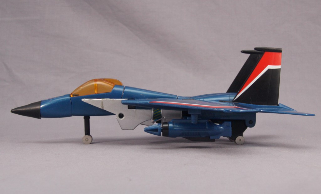 Thundercracker is based on the Diaclone “Real & Robo” Series F-15 Eagle Jet Acrobat Type. All three of the 1984 F-15s are exactly the same mold, only differing in coloration and decals.