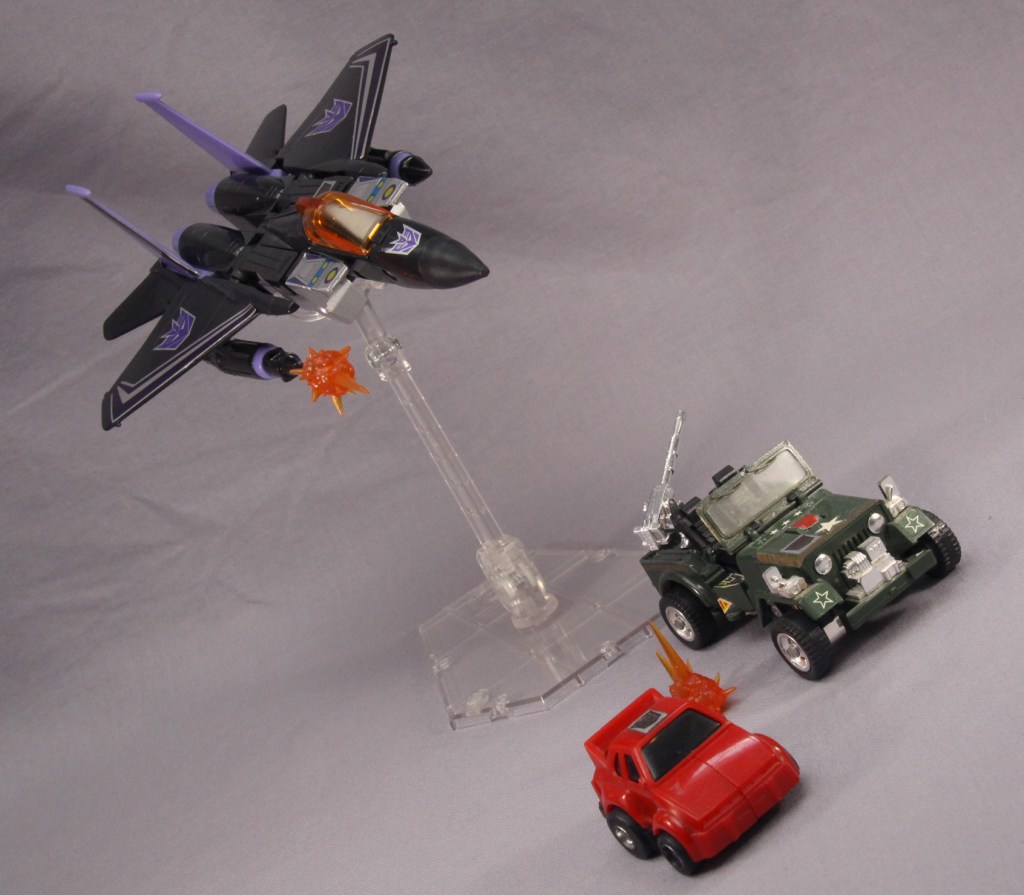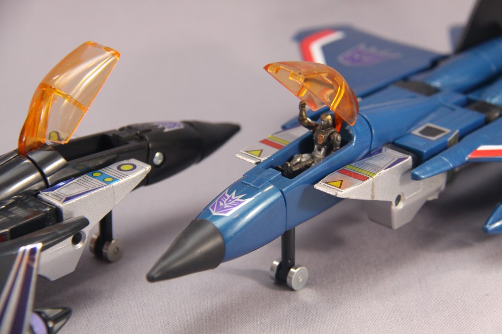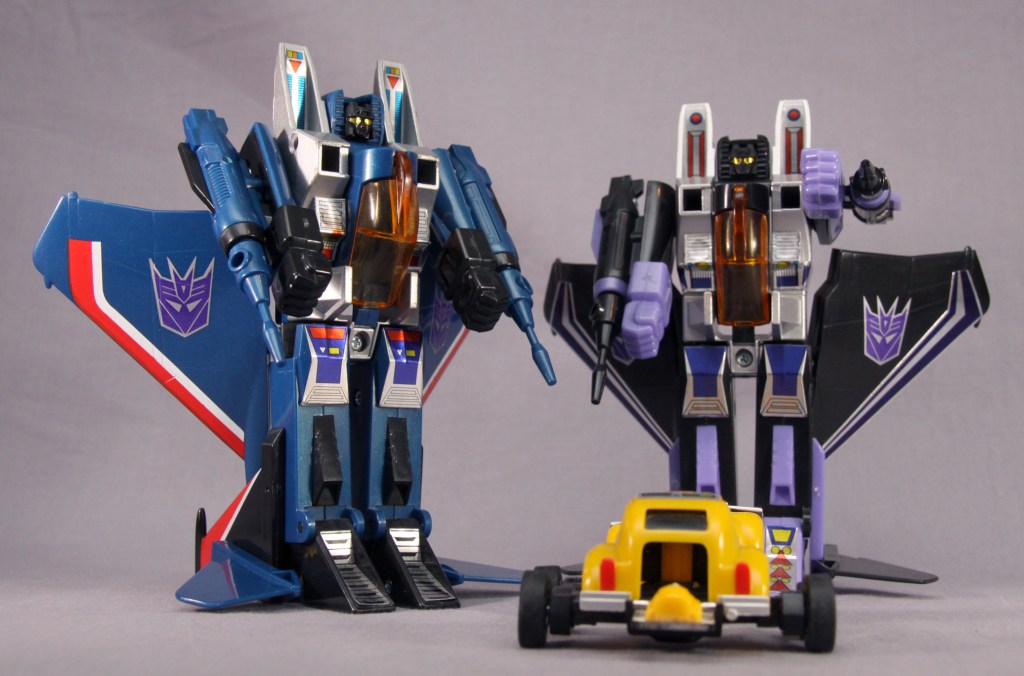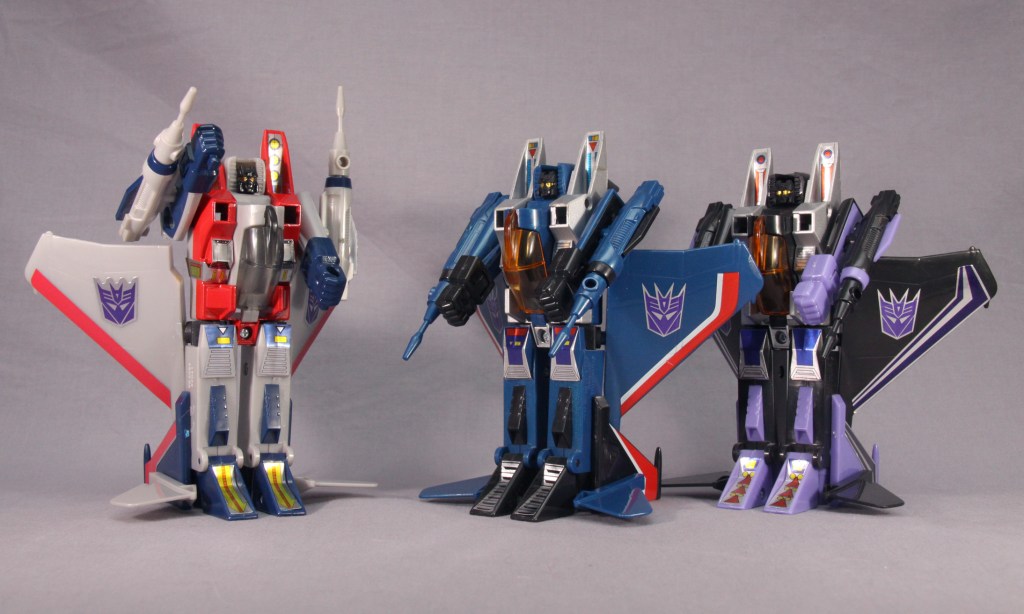 It’s easy to be jaded and see these toys as a cheap “collect ’em all” strategy. Most fans, though, have their own favorite seeker. It might be Skywarp for his sadistic personality. It might be Thundercracker for his deep-seated misgivings about the Decepticon cause (which later comic stories took to fun places). It might be just because of colors. Regardless, I think there’s more to these toys than a need to complete a set. True, a G1 Decepticon display never feels quite right without them, but I don’t feel burdened when I decide I’m going to complete yet another set of F-15 guys.