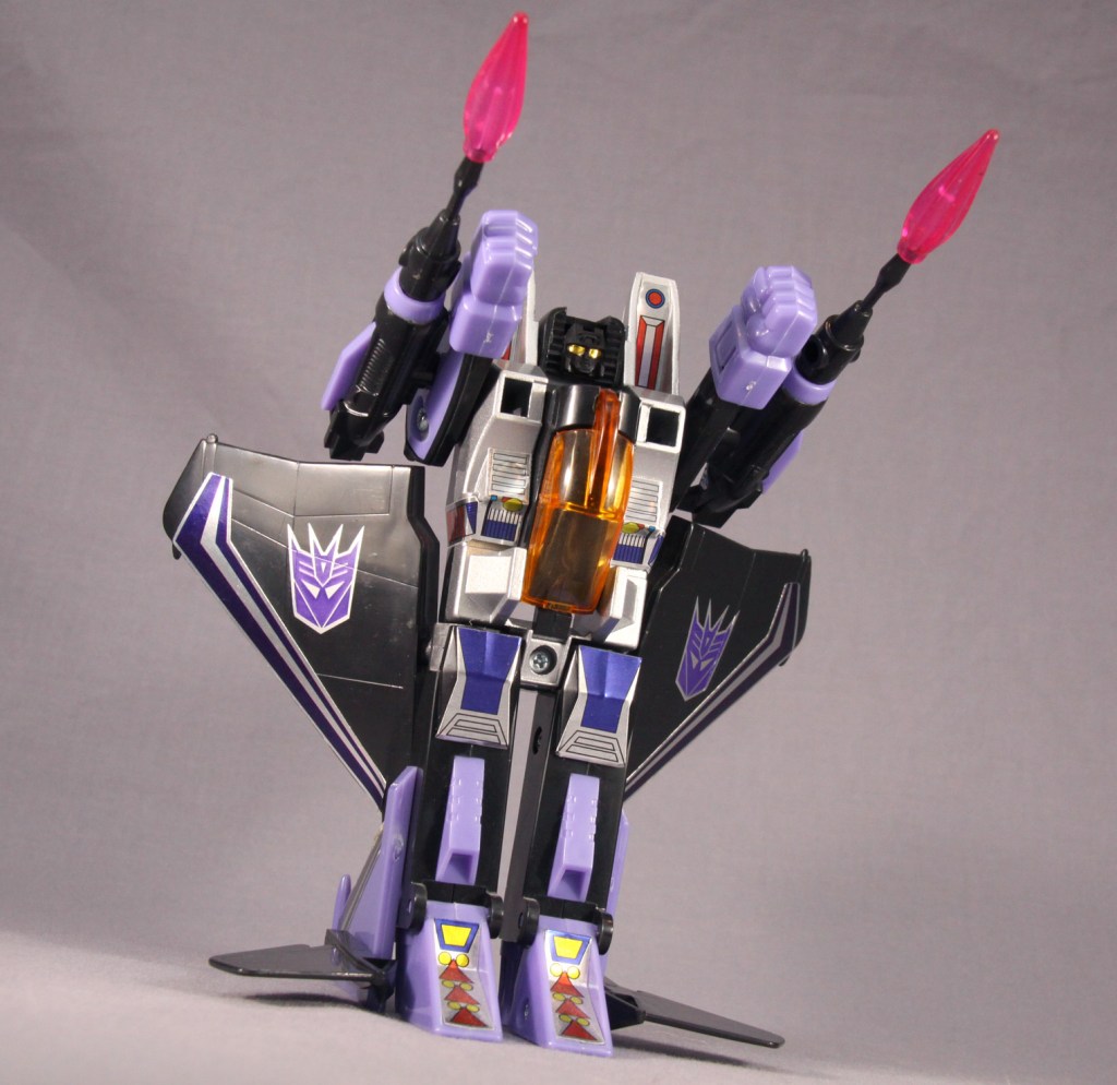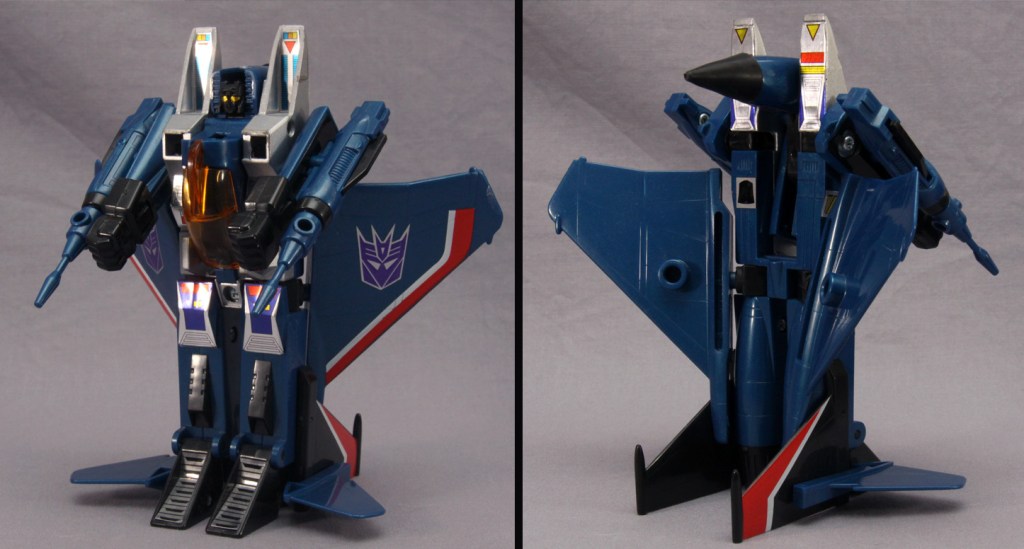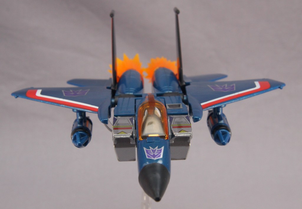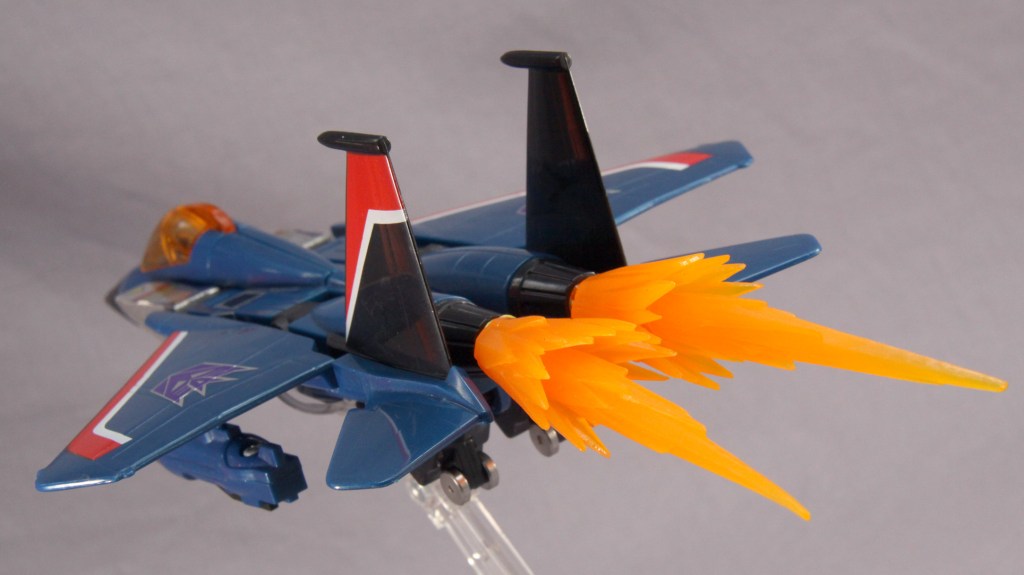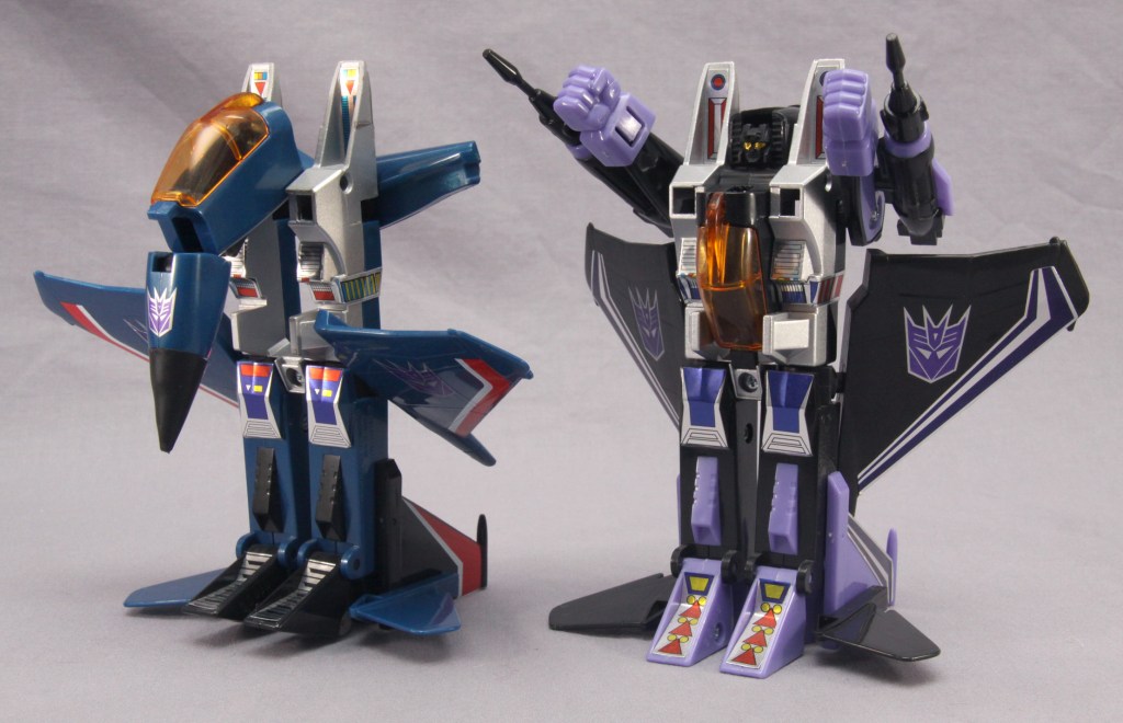 It’s easy to be jaded and see these toys as a cheap “collect ’em all” strategy. Most fans, though, have their own favorite seeker. It might be Skywarp for his sadistic personality. It might be Thundercracker for his deep-seated misgivings about the Decepticon cause (which later comic stories took to fun places). It might be just because of colors. Regardless, I think there’s more to these toys than a need to complete a set. True, a G1 Decepticon display never feels quite right without them, but I don’t feel burdened when I decide I’m going to complete yet another set of F-15 guys.